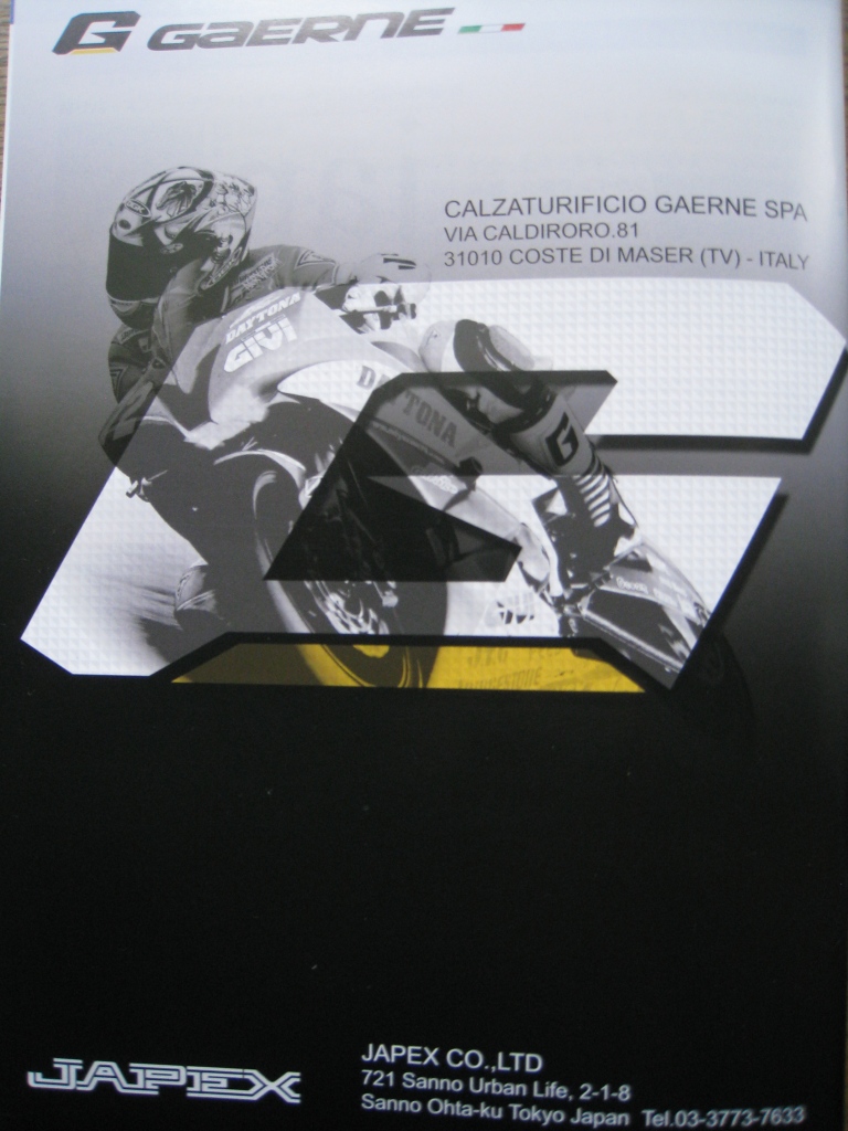長年愛用しているレーシングブーツ 『 GAERNE 』 の日本代理店の 『 JAPEX 』 から新しいカタログが届いた。