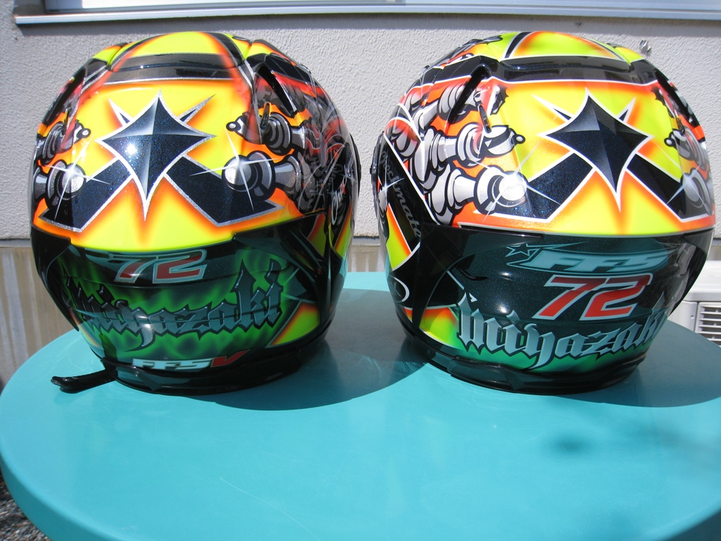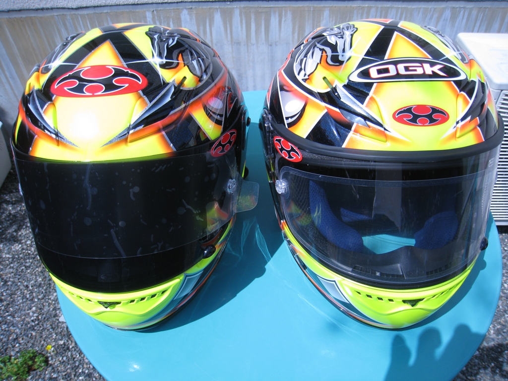 『 OGK KABUTO 』 の今シーズンの新型ヘルメットFF5V(左側)