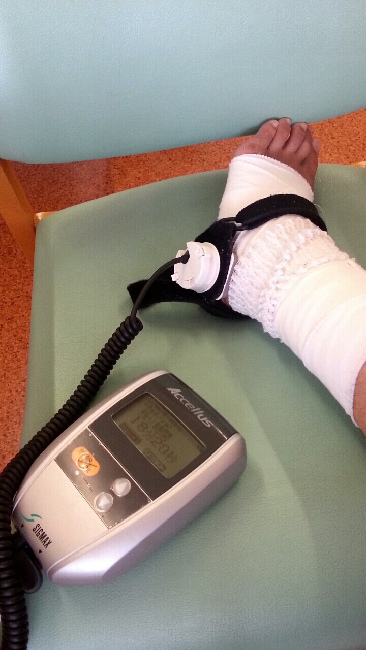 痛くも痒くも痺れるワケでもない電気系の治療だが、骨の付くのが早くなるらしい!