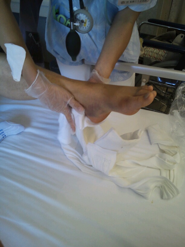 数日振りに骨折した左の生足を見た!