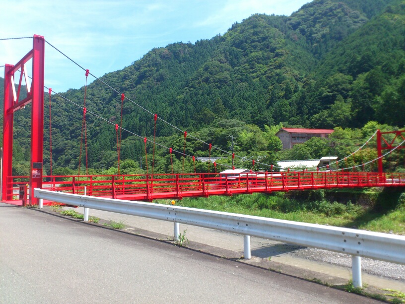 車がすれ違う事なんて出来ないトンネルを抜けて、細~い山道も抜けて、これまた細~い赤い橋を渡ると現れる水汲み場だ!