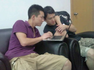 こんな天気だから、早めにトレーニングを切り上げたら、パソコンで『 www.miyazaki72.com 』を見ていた教え子の2人。(笑)