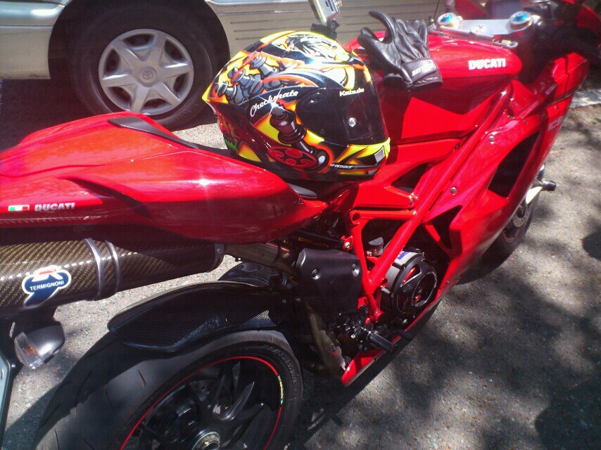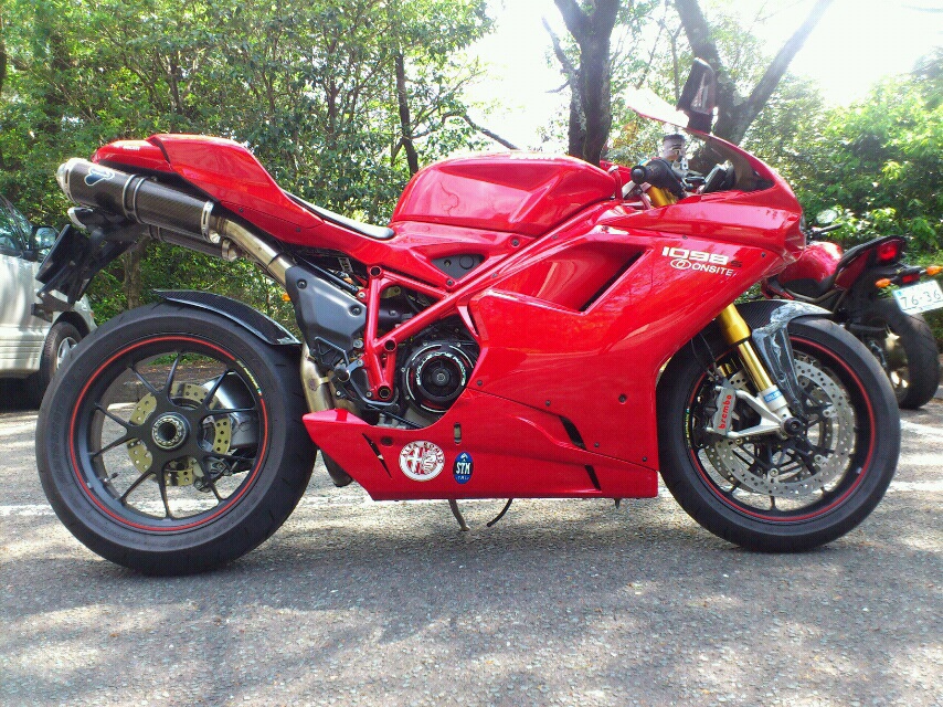 ホント久々に、ビッグスクーターばかりだったここのところの流れを脱出して、今日のツーリング試乗会では、一気に出世して DUCATI 1098S だー!