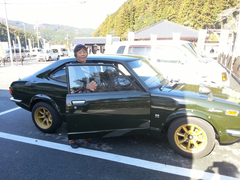 内外装共にキレイで、この時代のクルマ (昭和48年式) もイイよなぁ~と眺めてたら、オバチャンか近くに寄ってきた。