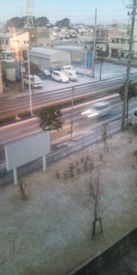 今朝は、浜松市内にホントにうっすらとだけど雪が積もってる。