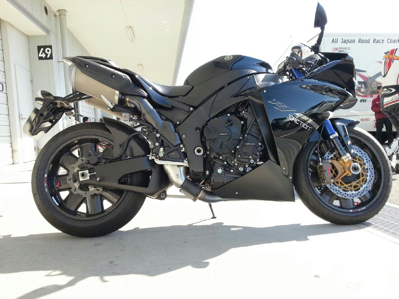 カーボンホイールが装着された R1 を発見!