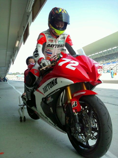 決勝2時間前のフリー走行を走り始めると、根本的には変わっていないが、ほんの僅かだけだがフィーリングがイイ!