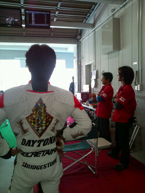 今回も、飯高くん&マネージャーをはしめ、『 銀色バイク 』 坂井さん、GP-MONOライダーの岩本くん、『 DAYTONA 』 りょーと、みんながMIYAZAKIのRaceの為に遠方から手助けに来てくれていた。