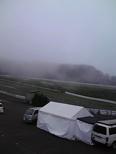今日のSUGOも雨は降らなかったけど、霧が出たりして冴えない天気だった。